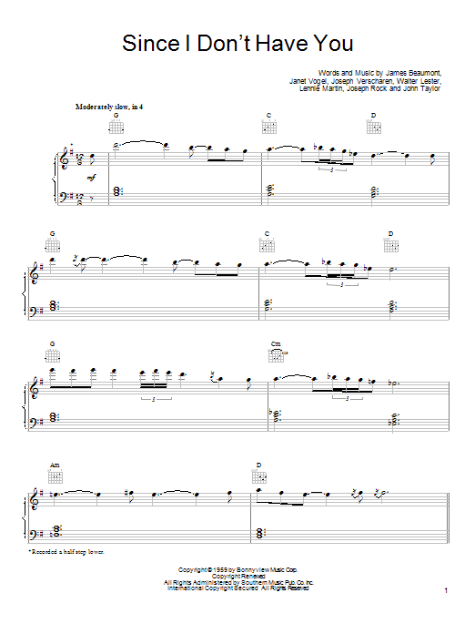Download or print Guns N' Roses Since I Don't Have You sheet music, chords and digital score arranged for Piano, Vocal & Guitar Chords (Right-Hand Melody). This Pop score includes 6 page(s).