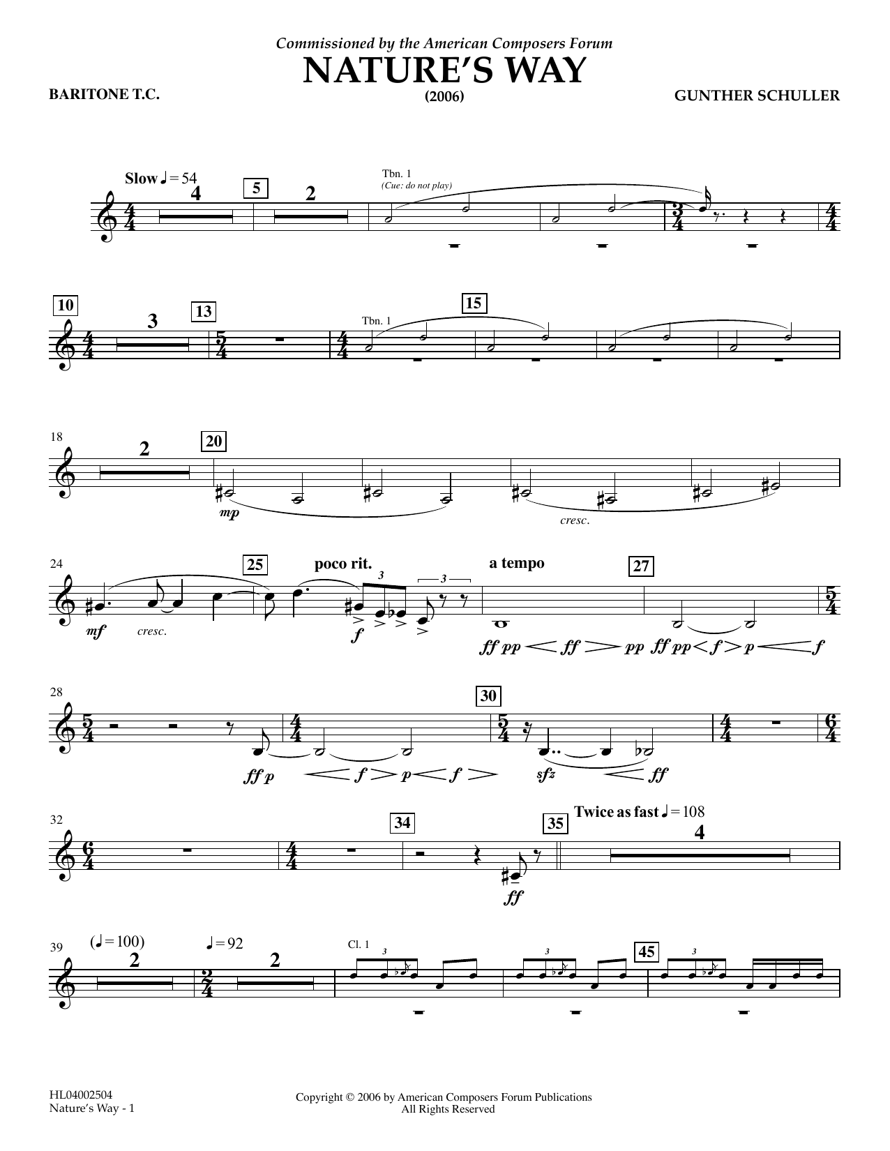 Download or print Gunther Schuller Nature's Way - Baritone T.C. sheet music, chords and digital score arranged for Concert Band. This Concert score includes 2 page(s).