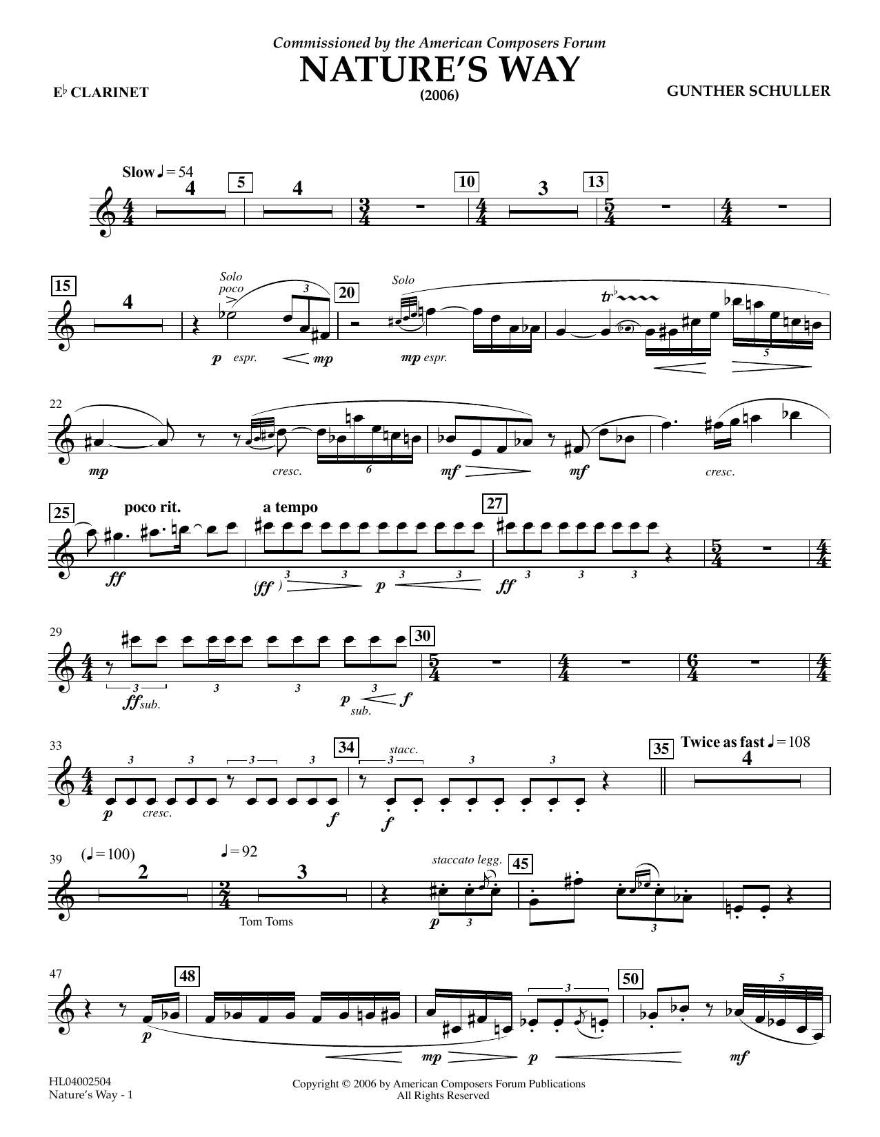 Download or print Gunther Schuller Nature's Way - Eb Clarinet sheet music, chords and digital score arranged for Concert Band. This Concert score includes 2 page(s).