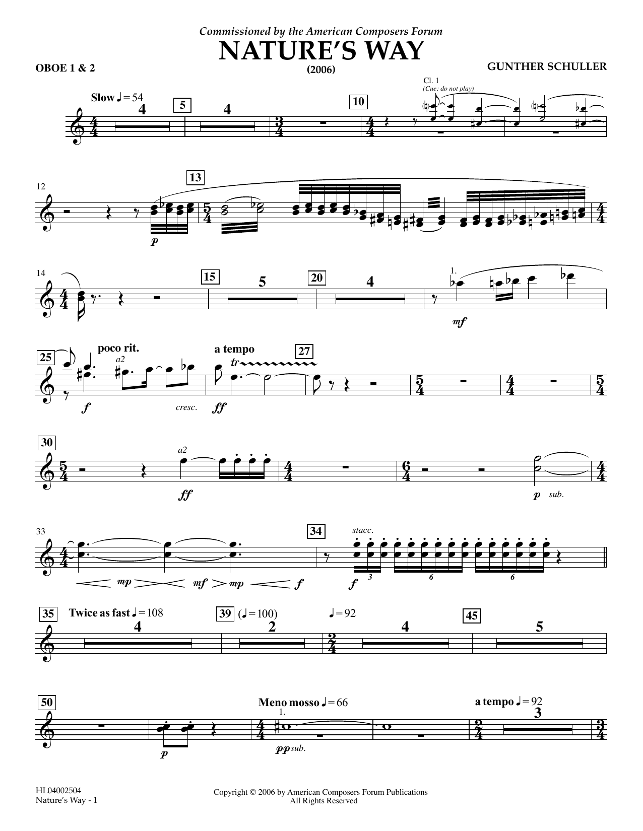 Download or print Gunther Schuller Nature's Way - Oboe 1 & 2 sheet music, chords and digital score arranged for Concert Band. This Concert score includes 2 page(s).