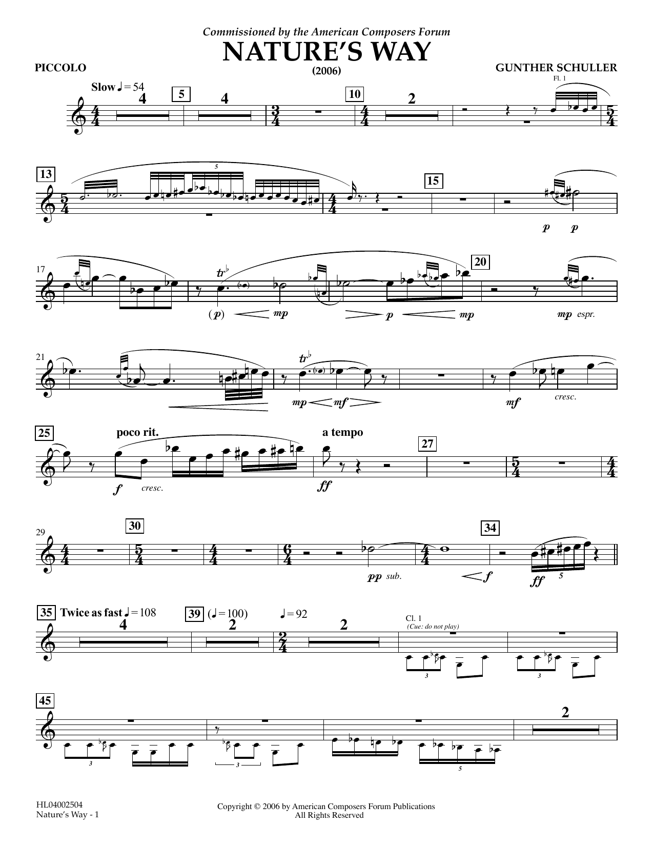 Download or print Gunther Schuller Nature's Way - Piccolo sheet music, chords and digital score arranged for Concert Band. This Concert score includes 2 page(s).