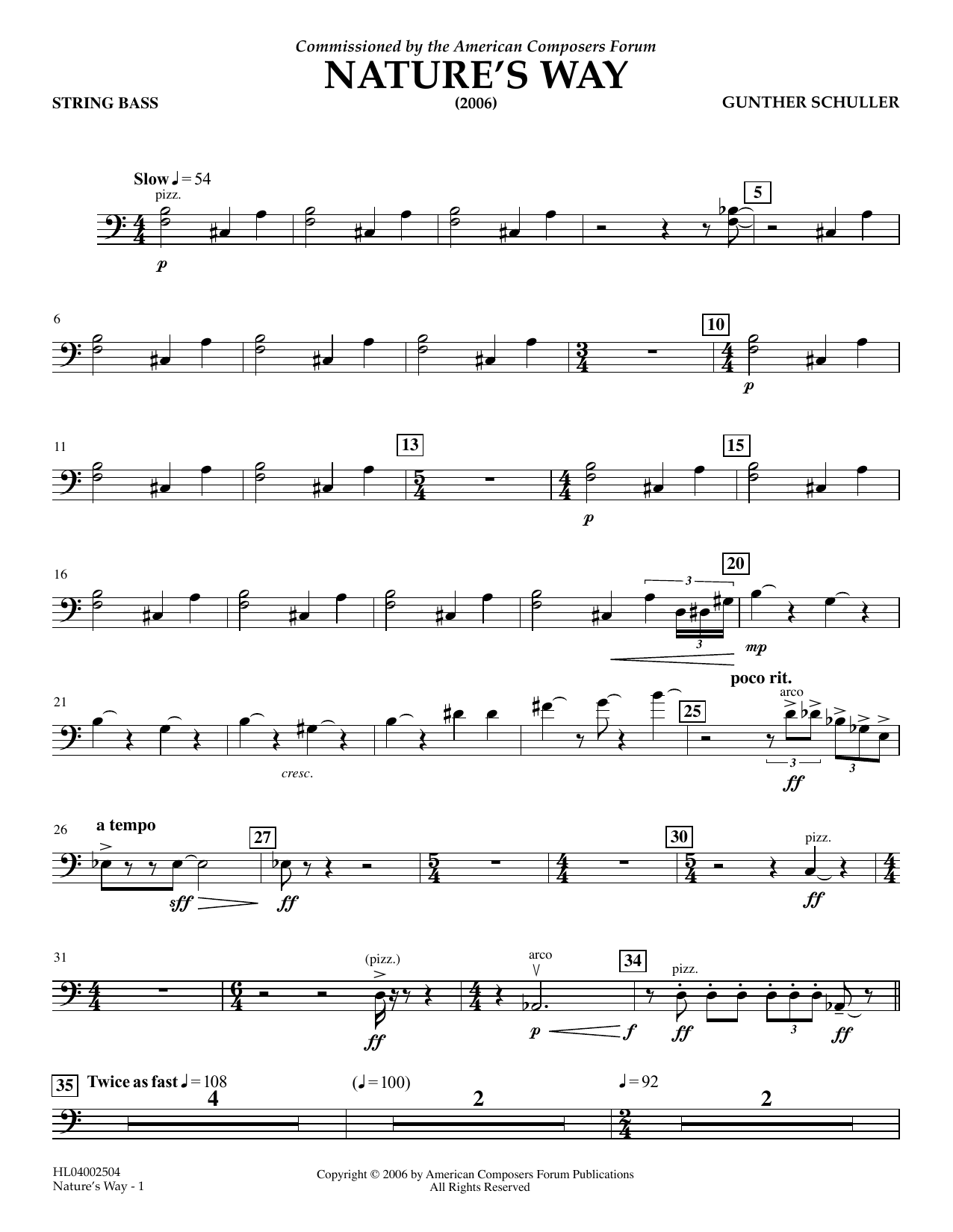 Download or print Gunther Schuller Nature's Way - String Bass sheet music, chords and digital score arranged for Concert Band. This Concert score includes 2 page(s).