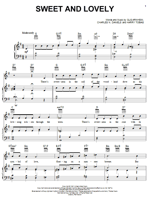 Download or print Gus Arnheim Sweet And Lovely sheet music, chords and digital score arranged for Piano, Vocal & Guitar Chords (Right-Hand Melody). This Jazz score includes 4 page(s).