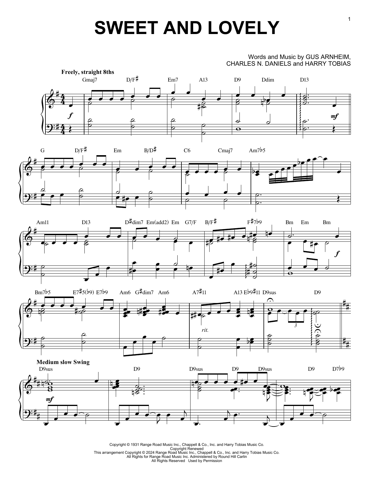 Download or print Gus Arnheim Sweet And Lovely (arr. Brent Edstrom) sheet music, chords and digital score arranged for Piano Solo. This Jazz score includes 3 page(s).