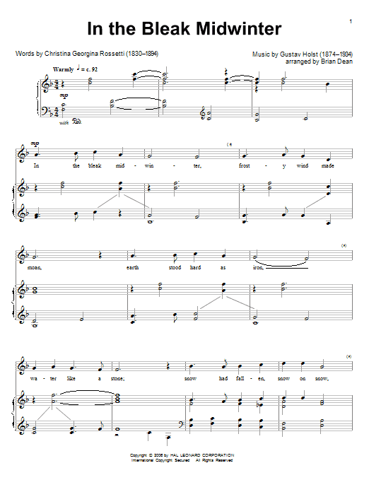 Download or print Gustav Holst In The Bleak Midwinter sheet music, chords and digital score arranged for Piano Solo. This Christmas score includes 2 page(s).
