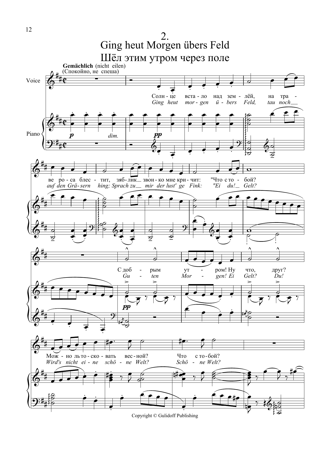 Quick facts 4 Songs "Journeyman": 2. Ging heut' Morgen übers Feld from the Lieder eines fahrenden Gesellen about digital sheet music