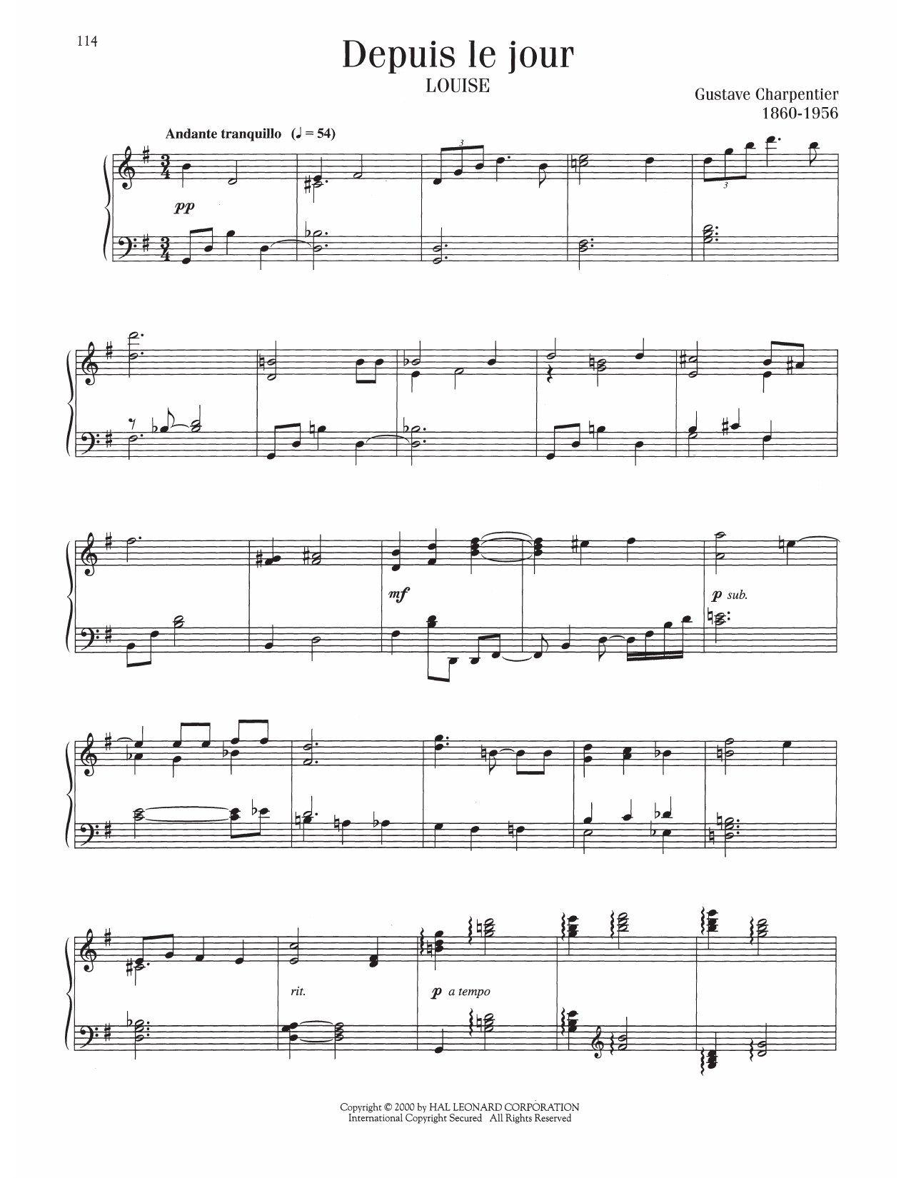 Download or print Gustave Charpentier Depuis Le Jour sheet music, chords and digital score arranged for Piano Solo. This Opera score includes 5 page(s).