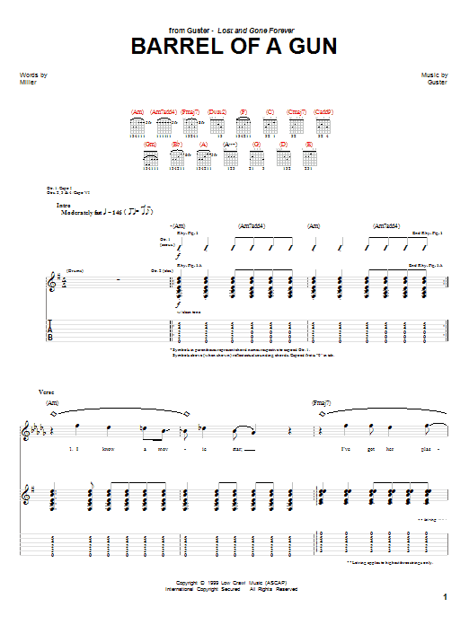 Download or print Guster Barrel Of A Gun sheet music, chords and digital score arranged for Guitar Tab. This Pop score includes 10 page(s).