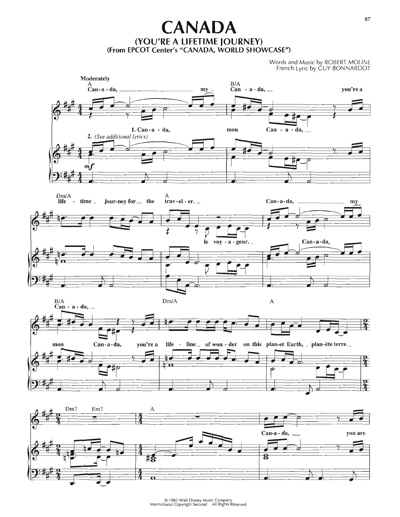 Download or print Guy Bonnardot Canada (You're A Lifetime Journey) sheet music, chords and digital score arranged for Piano, Vocal & Guitar Chords (Right-Hand Melody). This Children score includes 3 page(s).