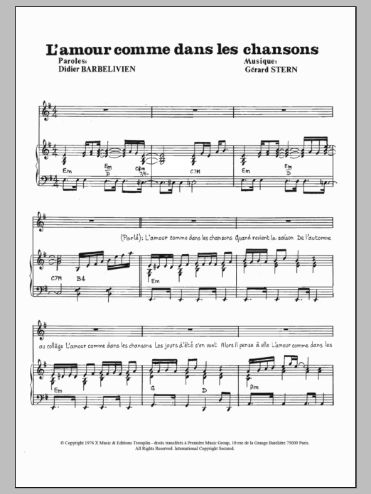Download or print Guy Bonnardot L'Amour Comme Dans Les Chansons sheet music, chords and digital score arranged for Piano & Vocal. This Pop score includes 3 page(s).