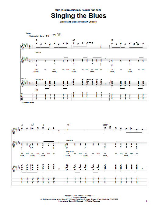 Download or print Guy Mitchell Singing The Blues sheet music, chords and digital score arranged for Easy Guitar Tab. This Country score includes 3 page(s).