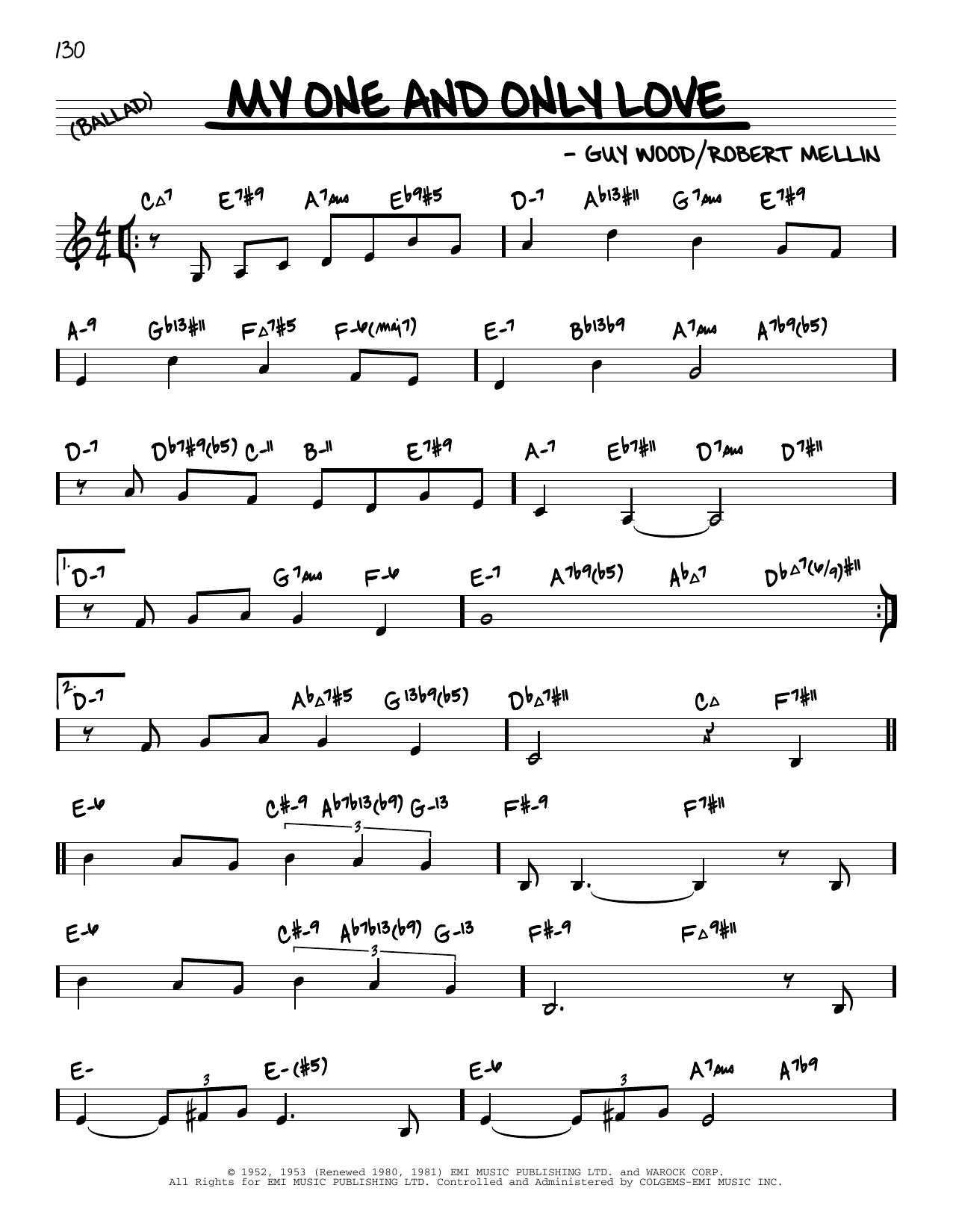 Download or print Guy Wood My One And Only Love (arr. David Hazeltine) sheet music, chords and digital score arranged for Real Book – Enhanced Chords. This Jazz score includes 2 page(s).