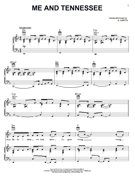 Download or print Gwyneth Paltrow Me And Tennessee sheet music, chords and digital score arranged for Piano, Vocal & Guitar Chords (Right-Hand Melody). This Country score includes 9 page(s).