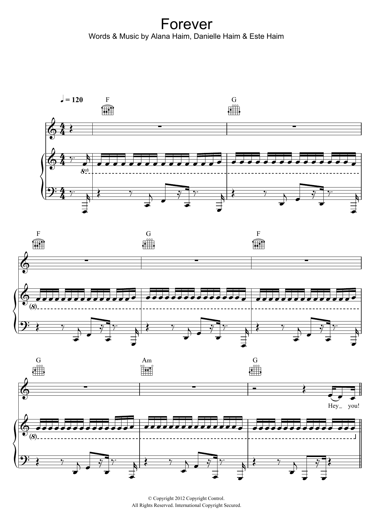 Download or print Haim Forever sheet music, chords and digital score arranged for Piano, Vocal & Guitar Chords. This Pop score includes 10 page(s).