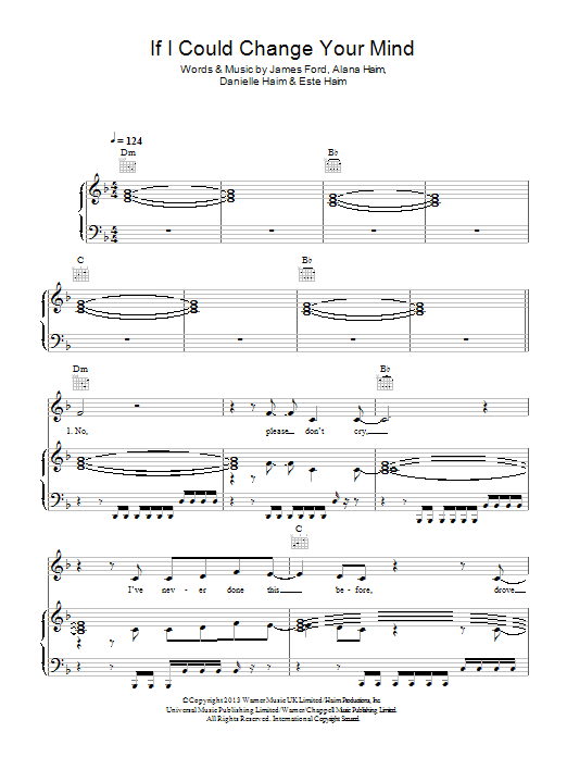 Download or print Haim If I Could Change Your Mind sheet music, chords and digital score arranged for Piano, Vocal & Guitar Chords. This Pop score includes 7 page(s).