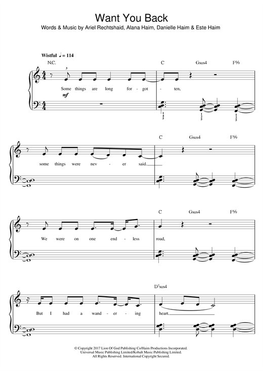 Download or print Haim Want You Back sheet music, chords and digital score arranged for Ukulele. This Pop score includes 3 page(s).