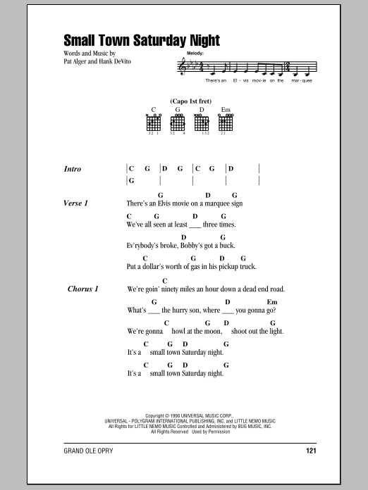 Quick facts Small Town Saturday Night about digital sheet music