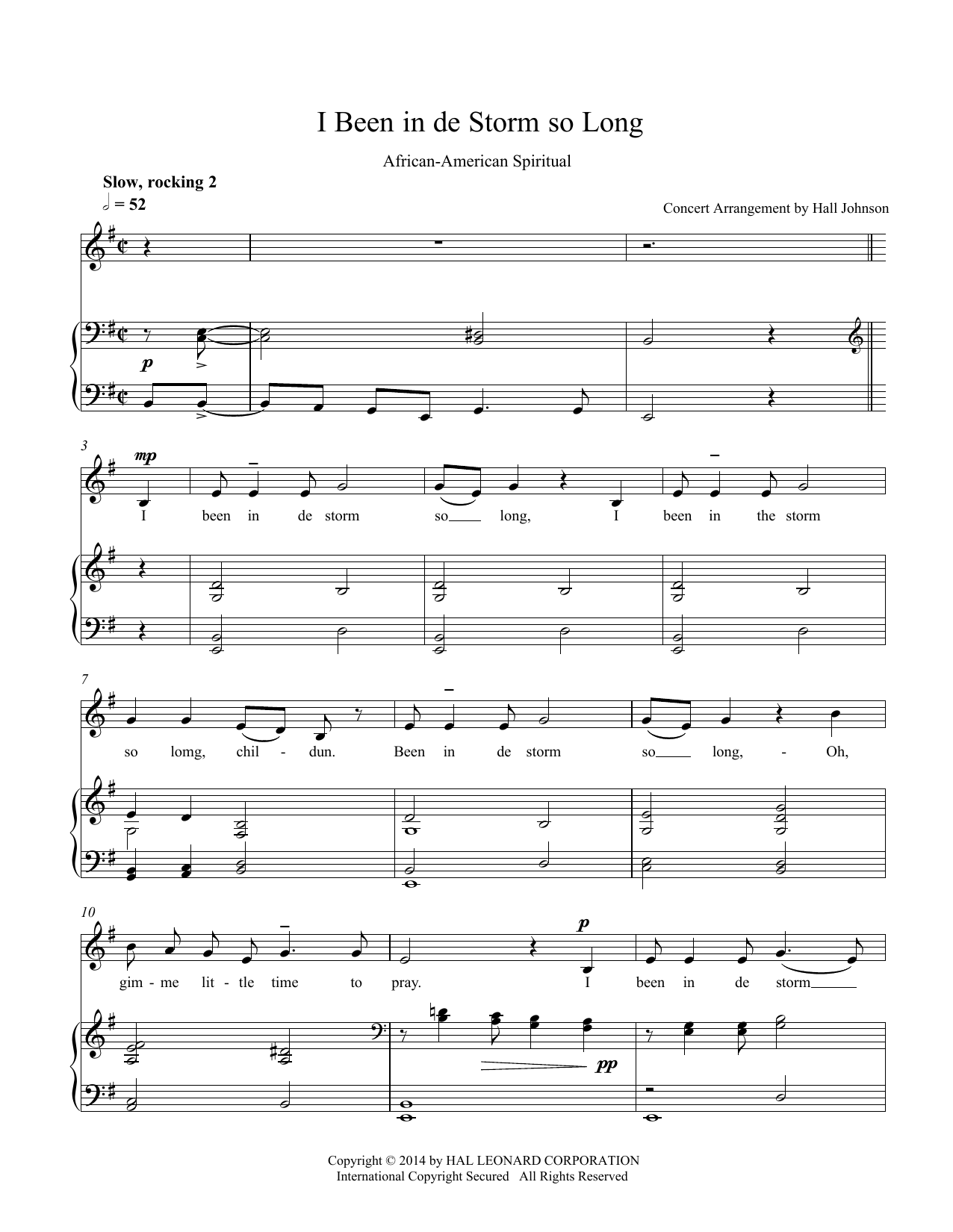 Download or print Hall Johnson I Been in de Storm So Long (E minor) sheet music, chords and digital score arranged for Piano & Vocal. This Classical score includes 5 page(s).
