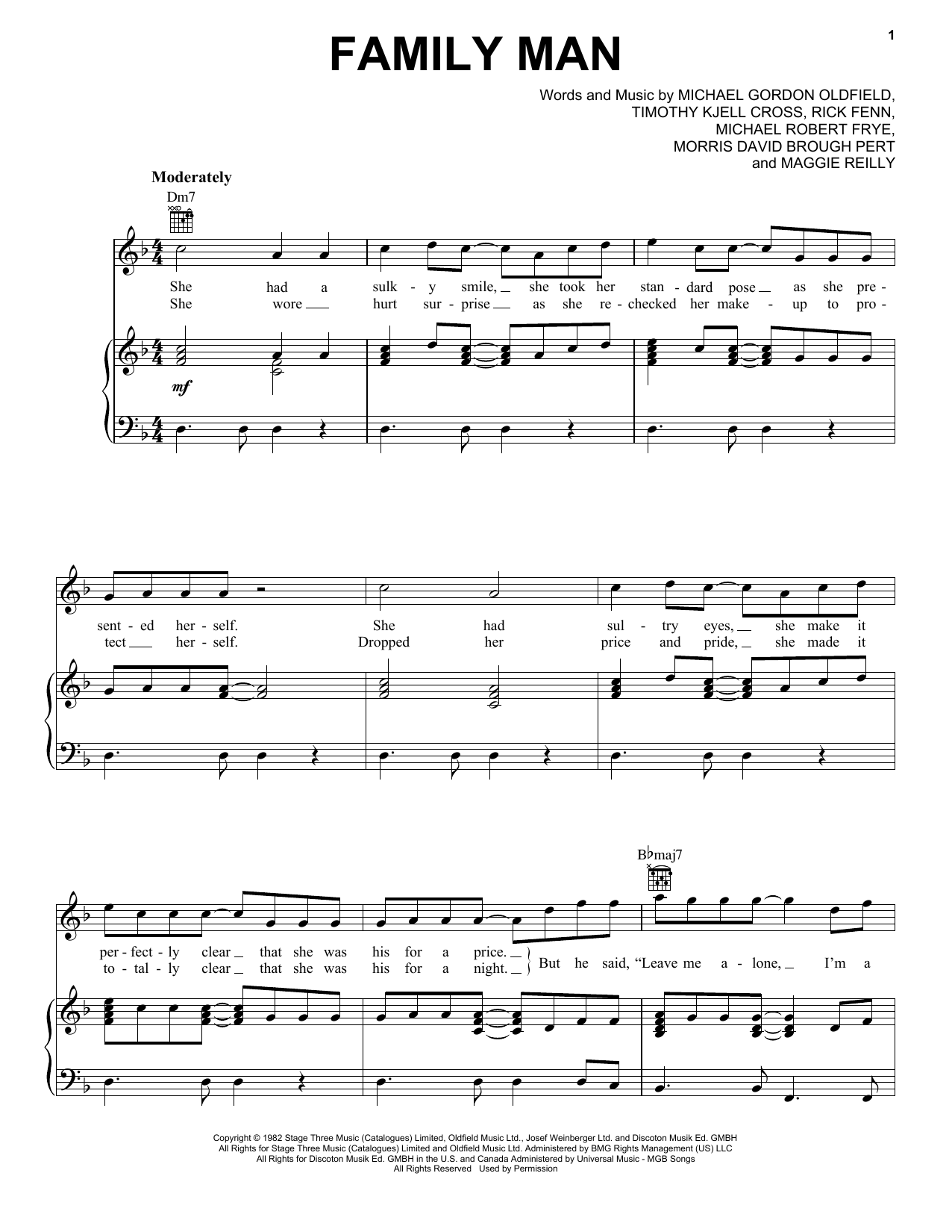 Download or print Hall & Oates Family Man sheet music, chords and digital score arranged for Piano, Vocal & Guitar Chords (Right-Hand Melody). This Pop score includes 5 page(s).