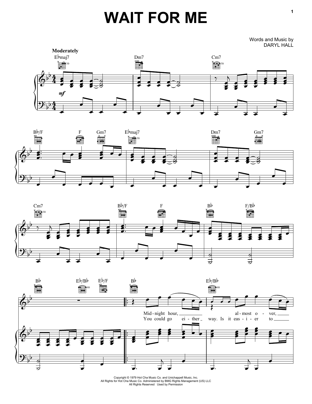 Download or print Hall & Oates Wait For Me sheet music, chords and digital score arranged for Piano, Vocal & Guitar Chords (Right-Hand Melody). This Pop score includes 5 page(s).