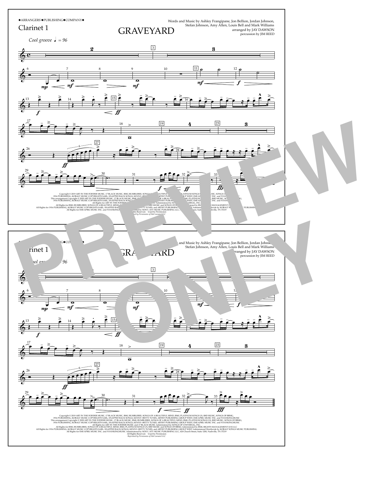 Download or print Halsey Graveyard (arr. Jay Dawson) - Clarinet 1 sheet music, chords and digital score arranged for Marching Band. This Pop score includes 1 page(s).