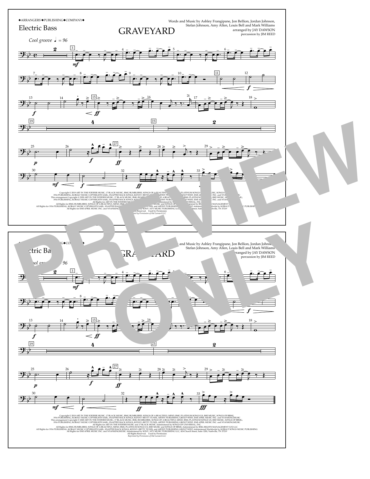 Download or print Halsey Graveyard (arr. Jay Dawson) - Electric Bass sheet music, chords and digital score arranged for Marching Band. This Pop score includes 1 page(s).