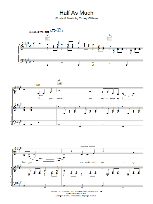 Download or print Hank Williams Half As Much sheet music, chords and digital score arranged for Lead Sheet / Fake Book. This Country score includes 1 page(s).
