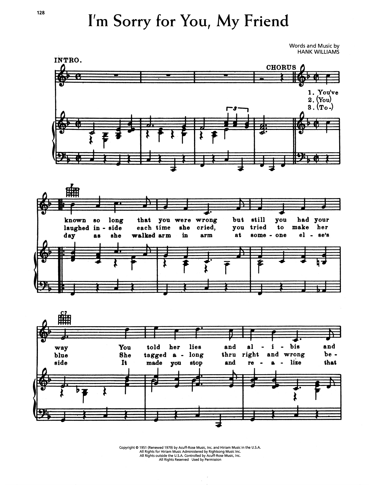 Download or print Hank Williams I'm Sorry For You My Friend sheet music, chords and digital score arranged for Piano, Vocal & Guitar Chords (Right-Hand Melody). This Country score includes 2 page(s).