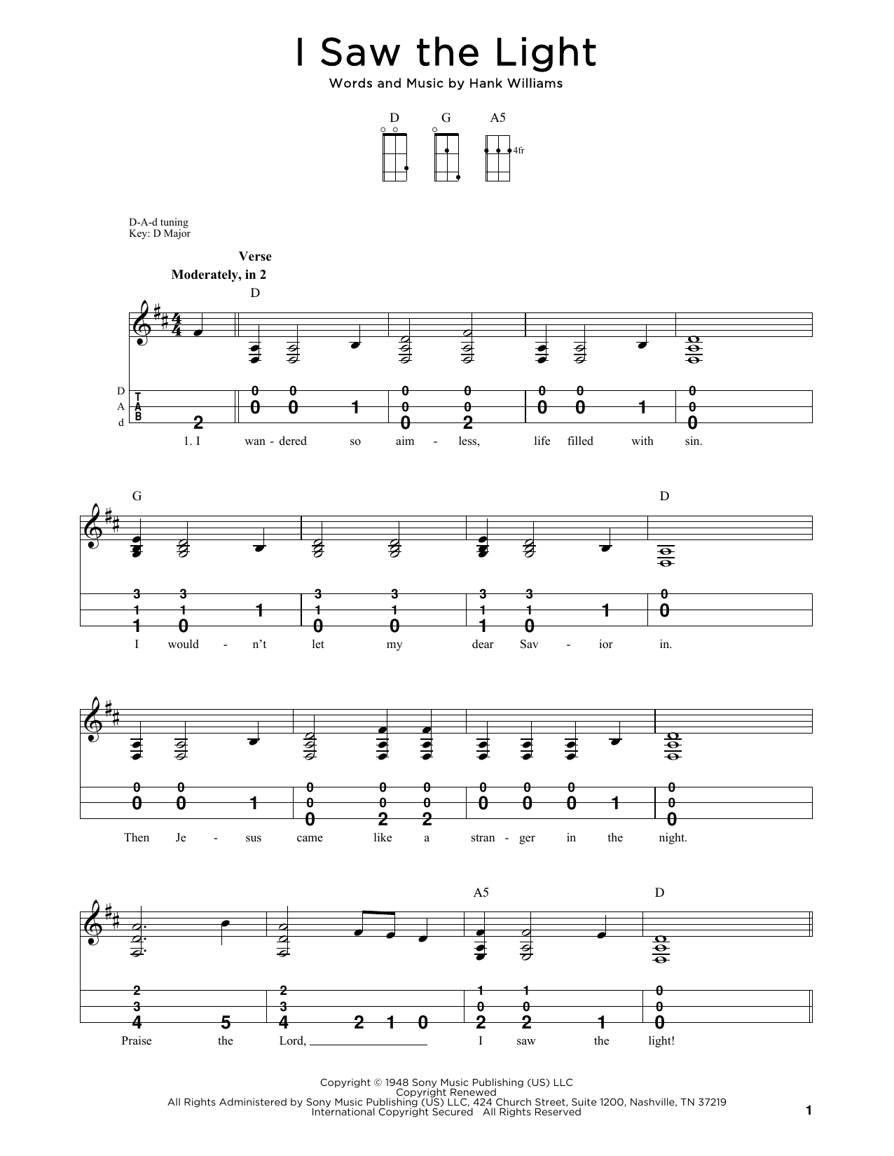 Download or print Hank Williams I Saw The Light (arr. Steven B. Eulberg) sheet music, chords and digital score arranged for Dulcimer. This Country score includes 2 page(s).