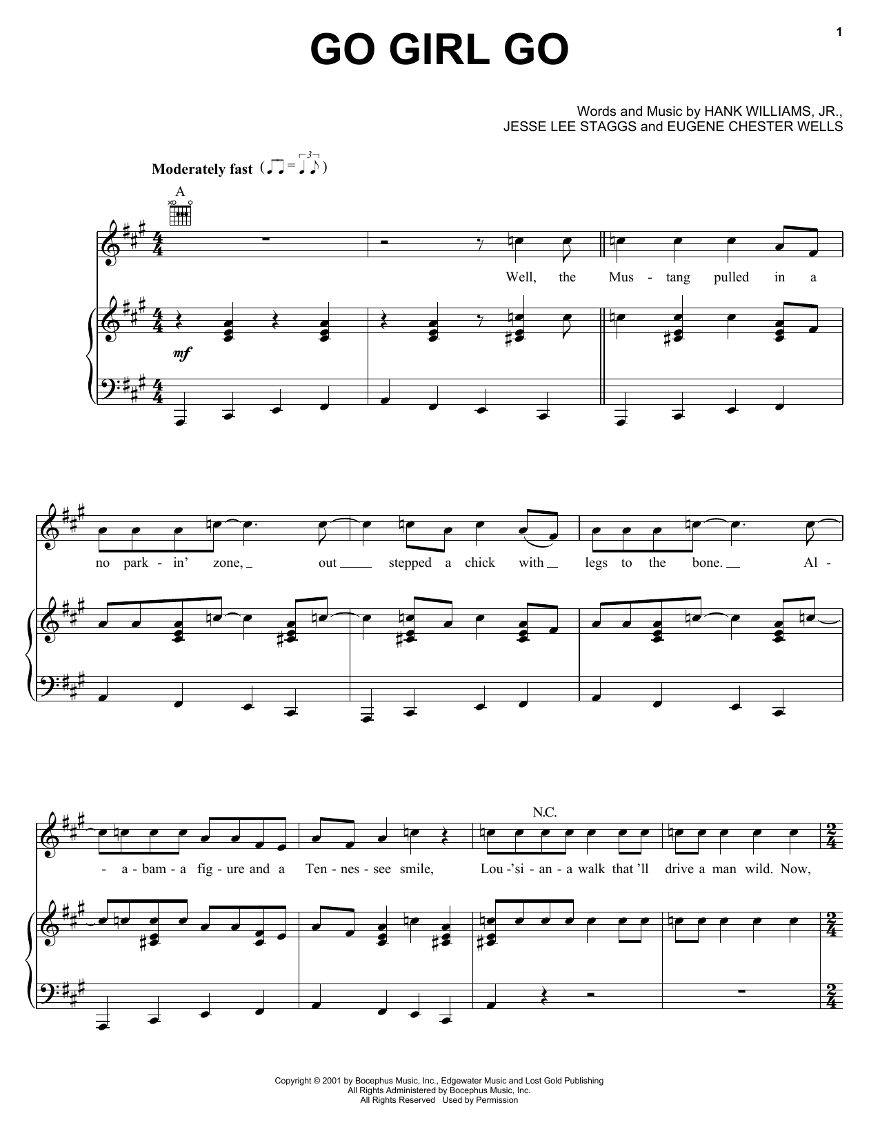 Download or print Hank Williams, Jr. Go Girl Go sheet music, chords and digital score arranged for Piano, Vocal & Guitar Chords (Right-Hand Melody). This Country score includes 7 page(s).