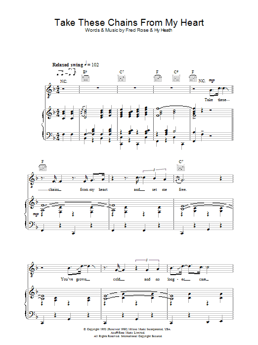 Download or print Hank Williams Take These Chains From My Heart sheet music, chords and digital score arranged for Super Easy Piano. This Country score includes 1 page(s).