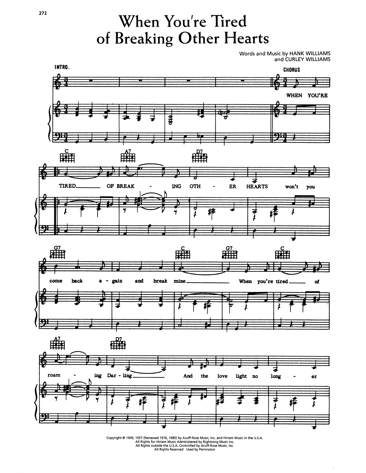 Download or print Hank Williams When You're Tired Of Breaking Other Hearts sheet music, chords and digital score arranged for Piano, Vocal & Guitar Chords (Right-Hand Melody). This Country score includes 2 page(s).