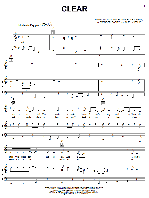 Download or print Hannah Montana Clear sheet music, chords and digital score arranged for Big Note Piano. This Disney score includes 7 page(s).