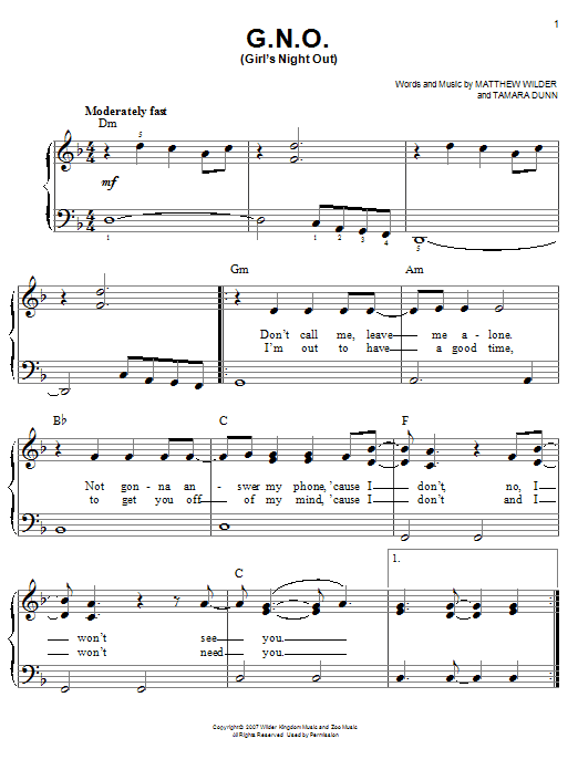 Quick facts G.N.O. (Girl's Night Out) about digital sheet music