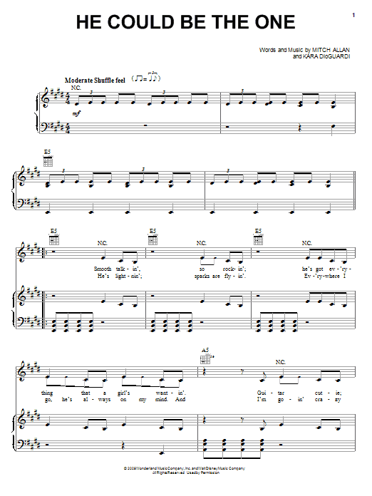 Download or print Hannah Montana He Could Be The One sheet music, chords and digital score arranged for Easy Piano. This Pop score includes 5 page(s).