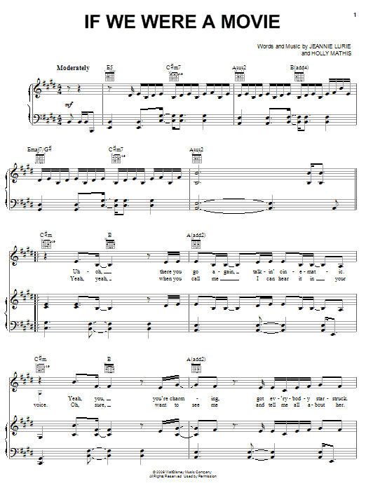 Download or print Hannah Montana If We Were A Movie sheet music, chords and digital score arranged for Piano, Vocal & Guitar Chords (Right-Hand Melody). This Disney score includes 6 page(s).