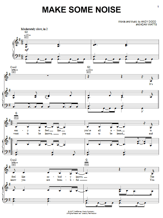 Download or print Hannah Montana Make Some Noise sheet music, chords and digital score arranged for Piano, Vocal & Guitar Chords (Right-Hand Melody). This Disney score includes 8 page(s).