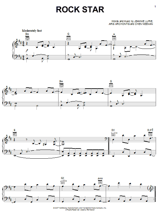 Download or print Hannah Montana Rock Star sheet music, chords and digital score arranged for Big Note Piano. This Disney score includes 7 page(s).