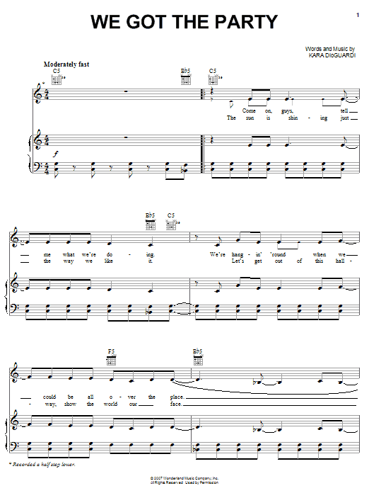 Download or print Hannah Montana We Got The Party sheet music, chords and digital score arranged for Piano, Vocal & Guitar Chords (Right-Hand Melody). This Disney score includes 10 page(s).