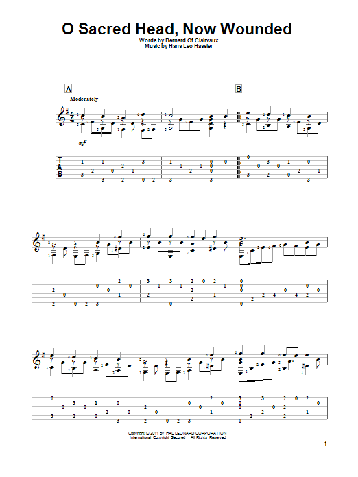 Download or print Bernard of Clairvaux O Sacred Head, Now Wounded sheet music, chords and digital score arranged for Solo Guitar. This Christian score includes 2 page(s).
