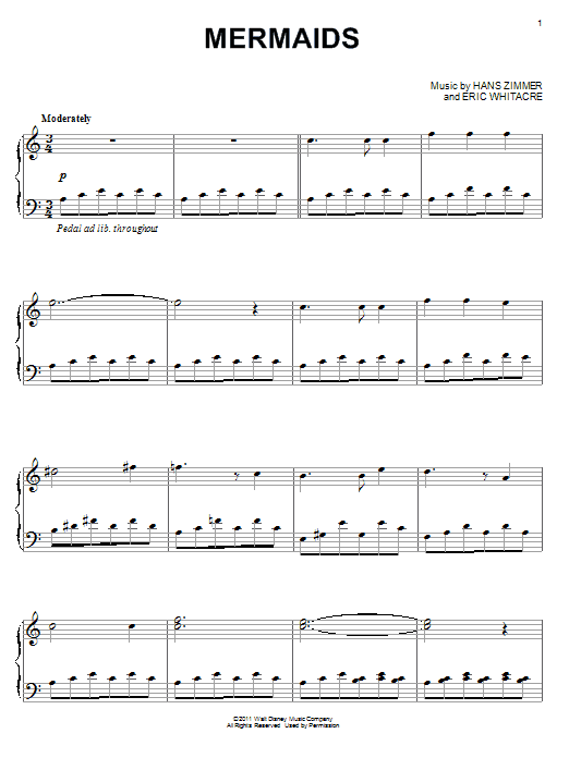 Download or print Hans Zimmer Mermaids sheet music, chords and digital score arranged for Easy Guitar Tab. This Disney score includes 3 page(s).