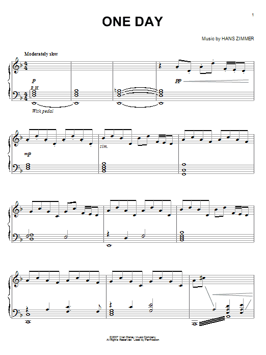 Download or print Hans Zimmer One Day (from Pirates Of The Caribbean: At World's End) sheet music, chords and digital score arranged for Easy Guitar Tab. This Disney score includes 4 page(s).