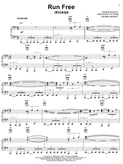 Download or print Hans Zimmer Run Free sheet music, chords and digital score arranged for Piano, Vocal & Guitar Chords (Right-Hand Melody). This Children score includes 2 page(s).