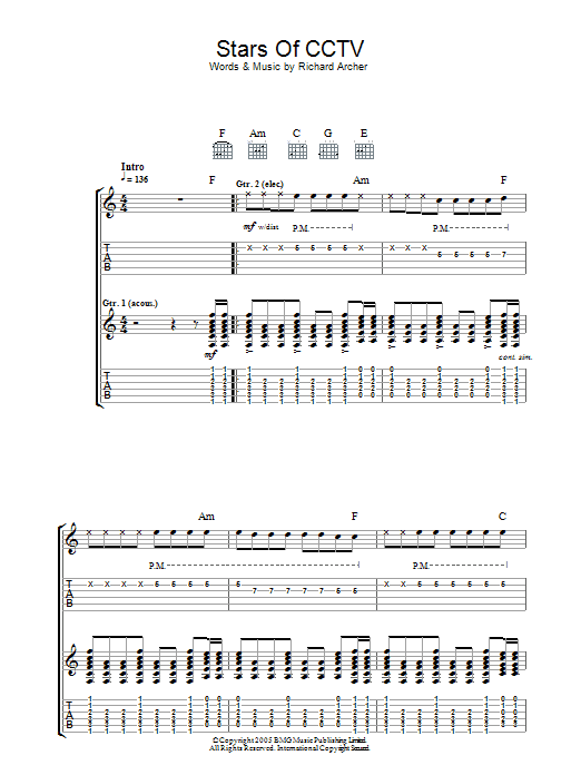 Download or print Hard-Fi Stars Of CCTV sheet music, chords and digital score arranged for Guitar Tab. This Rock score includes 7 page(s).