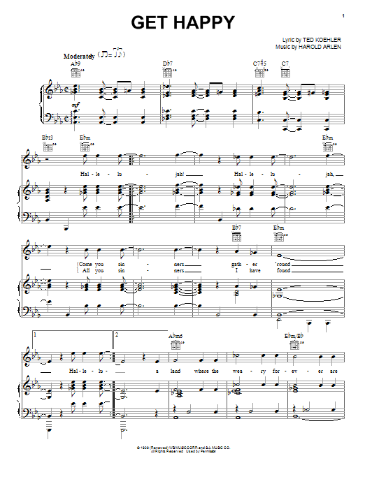 Download or print Harold Arlen Get Happy sheet music, chords and digital score arranged for Lead Sheet / Fake Book. This Oldies score includes 1 page(s).