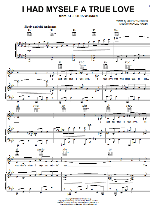 Download or print Harold Arlen I Had Myself A True Love sheet music, chords and digital score arranged for Piano, Vocal & Guitar Chords (Right-Hand Melody). This Love score includes 6 page(s).