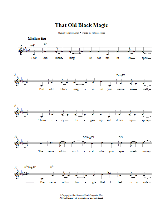Download or print Judy Garland That Old Black Magic sheet music, chords and digital score arranged for Lead Sheet / Fake Book. This Film/TV score includes 3 page(s).