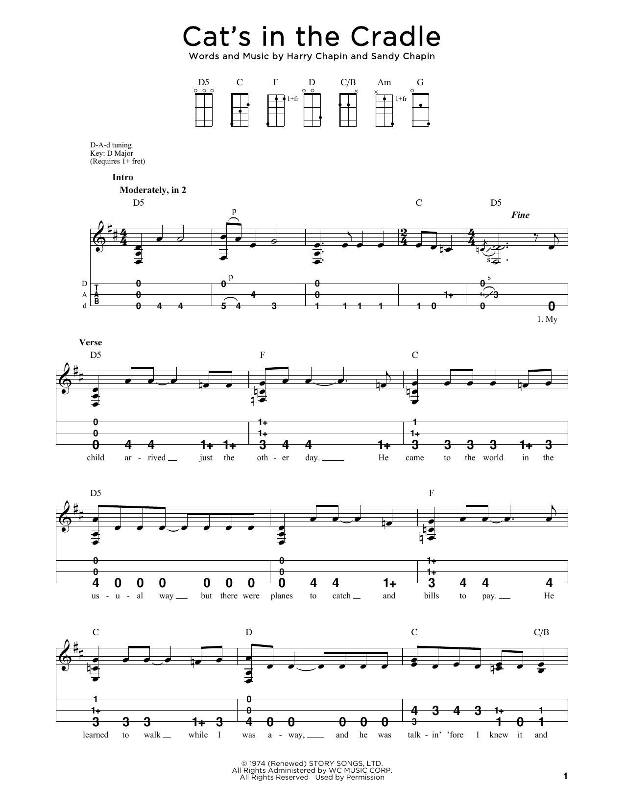 Download or print Harry Chapin Cat's In The Cradle (arr. Steven B. Eulberg) sheet music, chords and digital score arranged for Dulcimer. This Pop score includes 2 page(s).