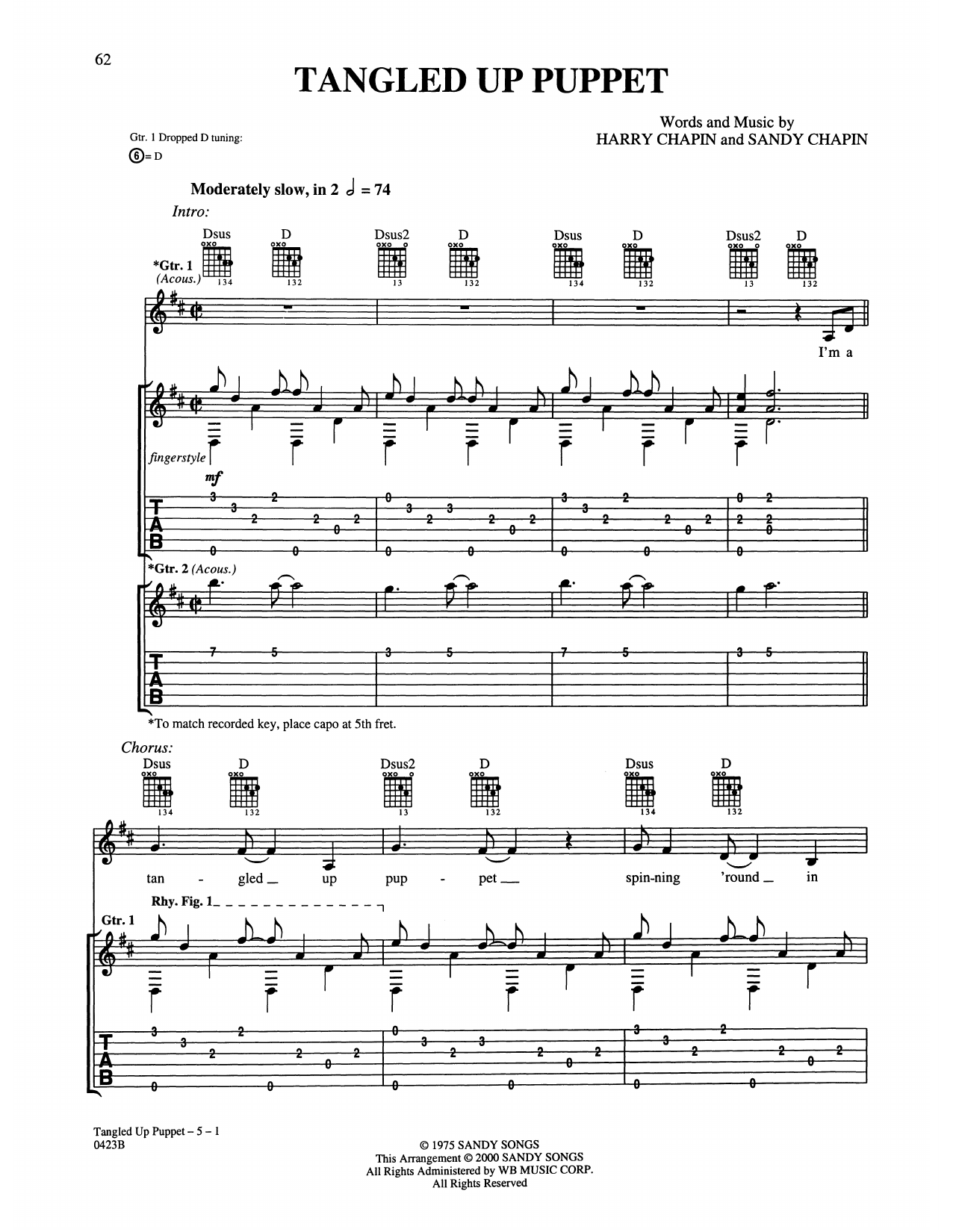 Download or print Harry Chapin Tangled Up Puppet sheet music, chords and digital score arranged for Guitar Tab. This Pop score includes 5 page(s).