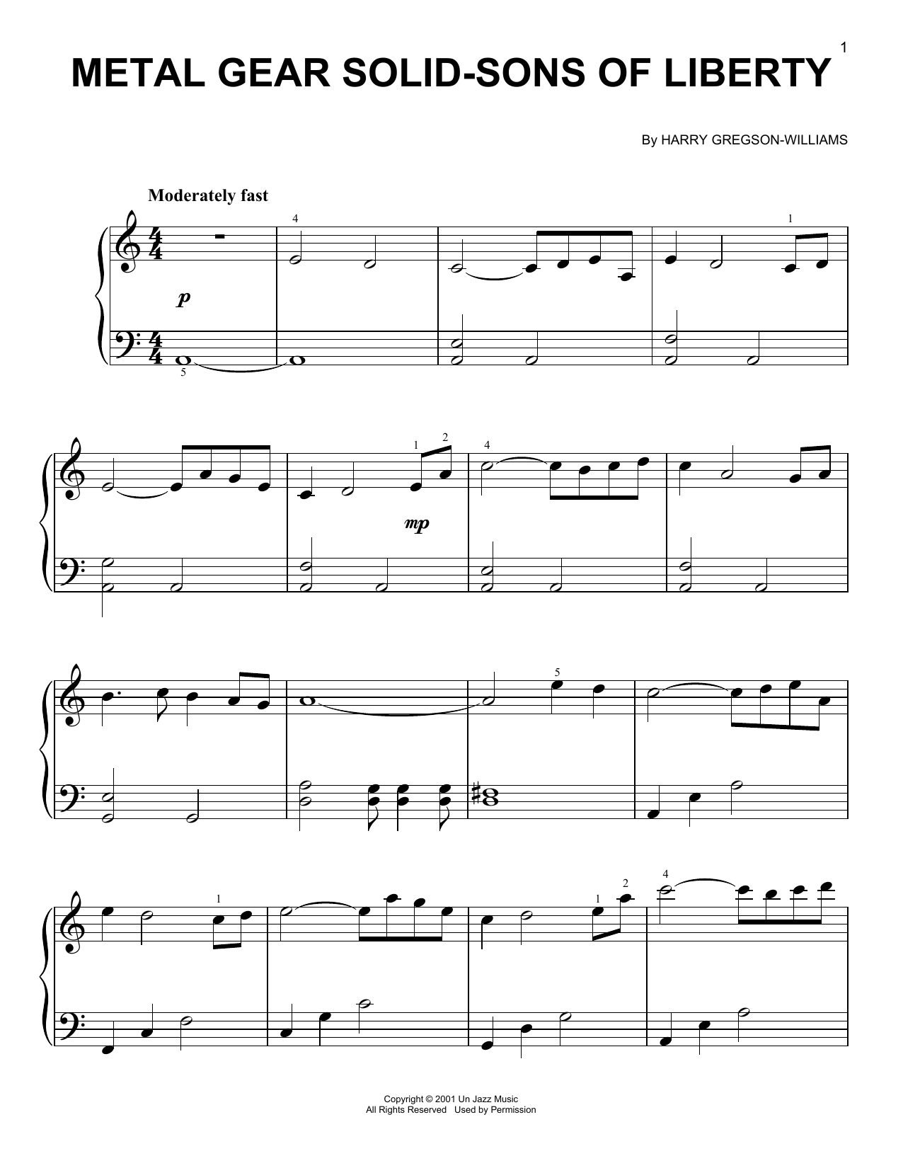 Download or print Harry Gregson-Williams Metal Gear Solid - Sons Of Liberty sheet music, chords and digital score arranged for Piano Solo. This Video Game score includes 5 page(s).